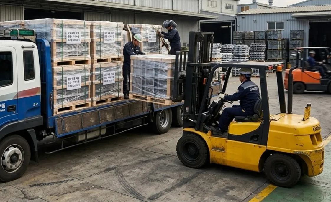 철저한 검수과정을 거친 제품이 안전하게 고객에게 도착할 수 있도록 화물차에 철저하게 결박하여 출하합니다.